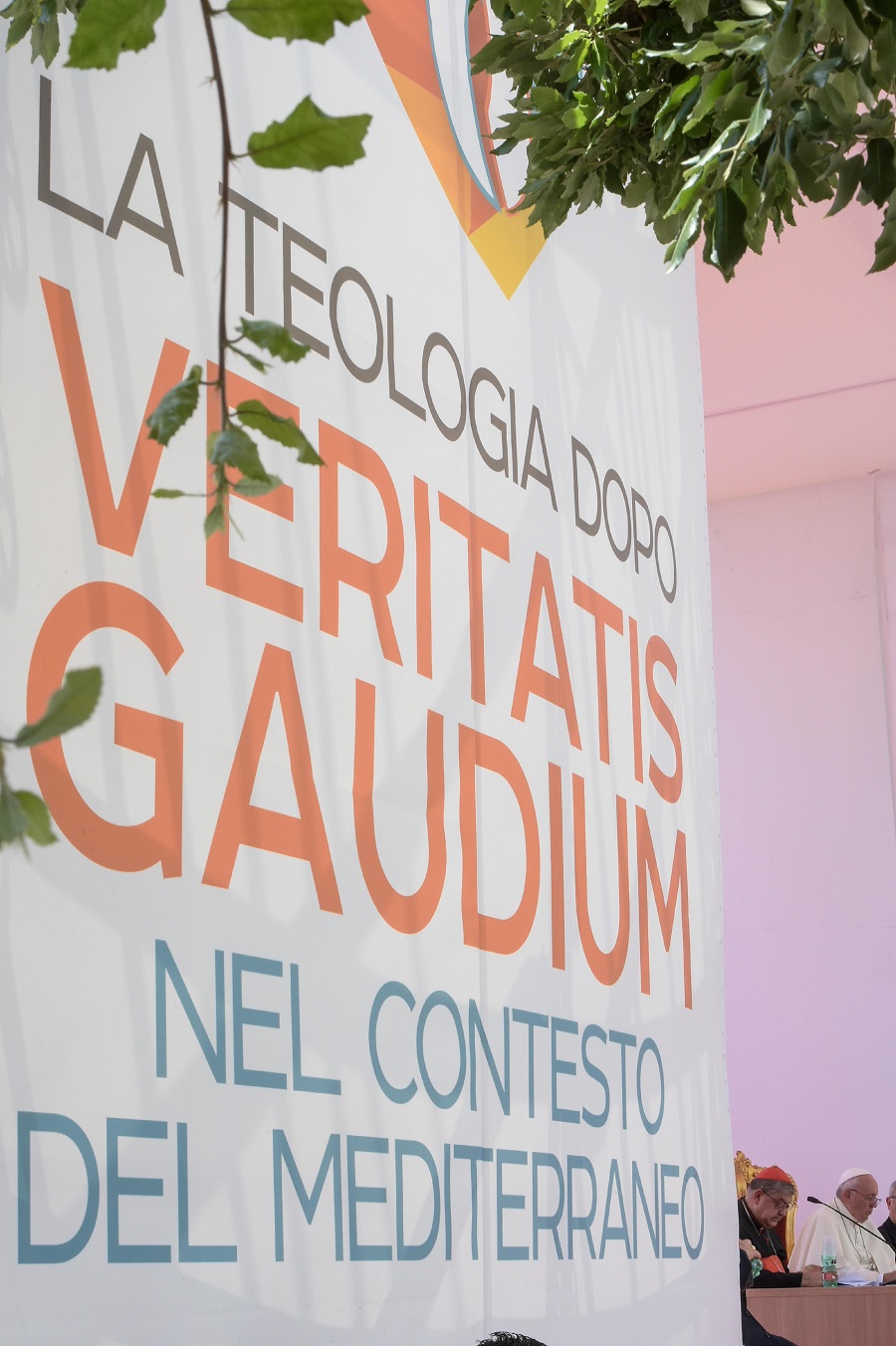 Nelle sue conclusioni il Papa riassume l’articolato contributo che ha lasciato al convegno: «I criteri del Proemio della Costituzione Apostolica Veritatis gaudium sono criteri evangelici. Il kerigma, il dialogo, il discernere, la collaborazione, la rete sono tutti elementi e criteri che traducono il modo con cui il Vangelo è stato vissuto e annunciato da Gesù e con cui può essere anche oggi trasmesso dai suoi discepoli». La teologia dopo Veritatis gaudium, dice, «è una teologia kerygmatica, una teologia del discernimento, della misericordia e dell’accoglienza, che si pone in dialogo con la società, le culture e le religioni per la costruzione della convivenza pacifica di persone e popoli. Il Mediterraneo è matrice storica, geografica e culturale dell’accoglienza kerygmatica praticata con il dialogo e con la misericordia. Di questa ricerca teologica Napoli è esempio e laboratorio speciale. Buon lavoro!».