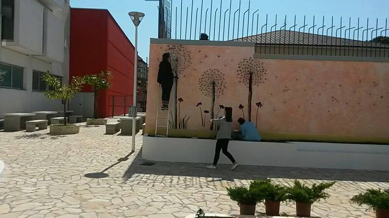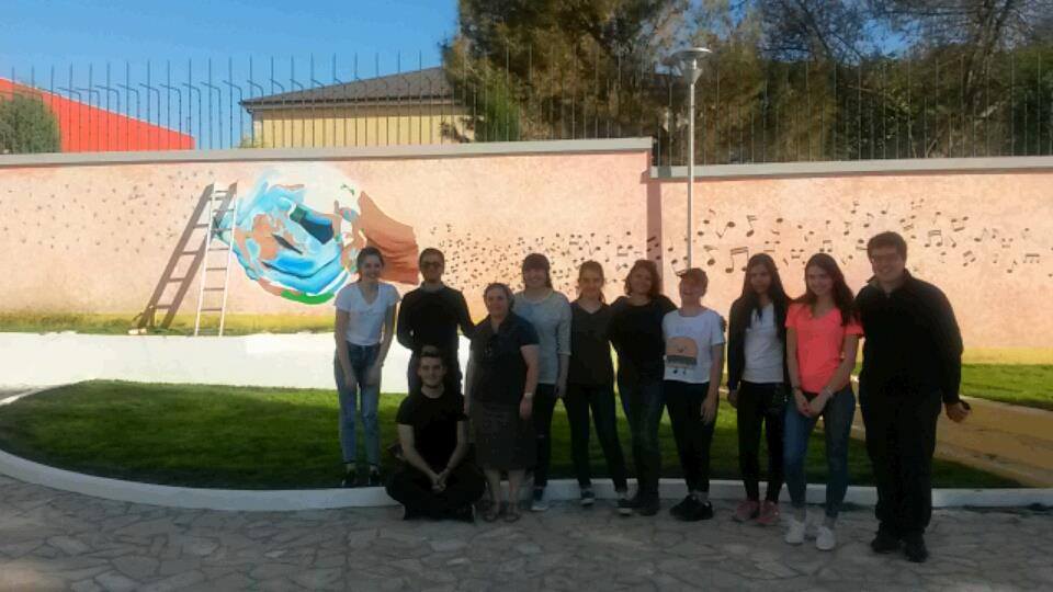 Tutto è iniziato qualche mese fa. La direzione della scuola voleva valorizzare una parte del cortile, risistemando il giardino e abbellendo il muro di cinta. Preside e professori però volevano trasformare quel momento in un’occasione di formazione. Cristina Orfanò del Magis si è così recata a Scutari e ha incontrato i ragazzi. «Gli studenti – ricorda Cristina – sono stati divisi in piccoli gruppi. Con loro ho parlato del concetto di incontro e, di quello ad esso collegato, di accoglienza. Hanno anche prodotto alcuni schizzi. Il lavoro è poi proseguito con un incontro generale di tutti i gruppi. In questa sede, i ragazzi hanno condiviso le emozioni e gli stati d’animo suscitati dal confronto in piccoli gruppi. Successivamente gli studenti si sono divisi nuovamente in tre gruppi e, raccogliendo le sensazioni, hanno realizzato tre bozzetti per il muro».