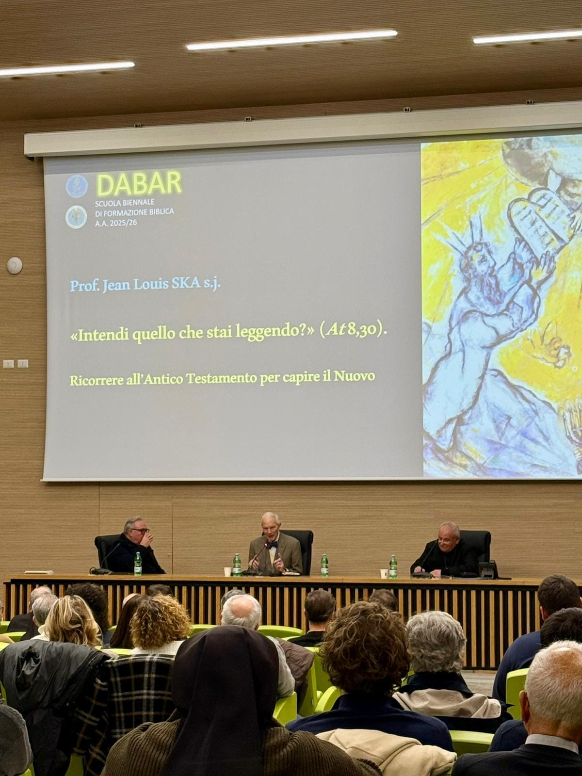 Quanto è fondamentale conoscere l’Antico Testamento per comprendere il Nuovo Testamento? Martedì 24 febbraio 2026, la Pontificia Facoltà Teologica dell’Italia Meridionale, sezione San Luigi, ha ospitato Jean Louis Ska S.I., grande esegeta del nostro tempo. L’incontro è stato voluto dal decano della facoltà, p. Vincenzo Anselmo S.I., e dai docenti don Emilio Salvatore e prof.ssa Annalisa Guida, che si occupano già da diversi anni della Scuola biennale di formazione biblica “Dabar”.