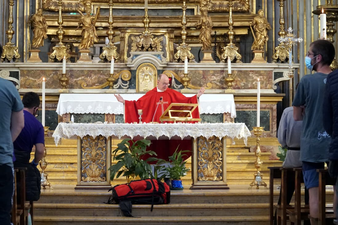 La prima parte del cammino era silenziosa, per permettere un tempo di preghiera personale. Seguiva poi un tempo di condivisione a coppie, sempre camminando. A metà percorso sono stati proposti spunti sulla figura di Ignazio. E, a fine giornata, la messa. La sera è stata dedicata agli incontri con testimoni provenienti dai territori attraversati: un laico presidente di una cooperativa sociale nel territorio della diocesi di Gaeta, un prete che ha ristrutturato un antico monastero e ne ha fatto un luogo d’accoglienza particolarmente attento a chi arriva con profonde ferite esistenziali, una suora del monastero di Der Mar Musa. Ha chiuso le giornate un tempo di rilettura.