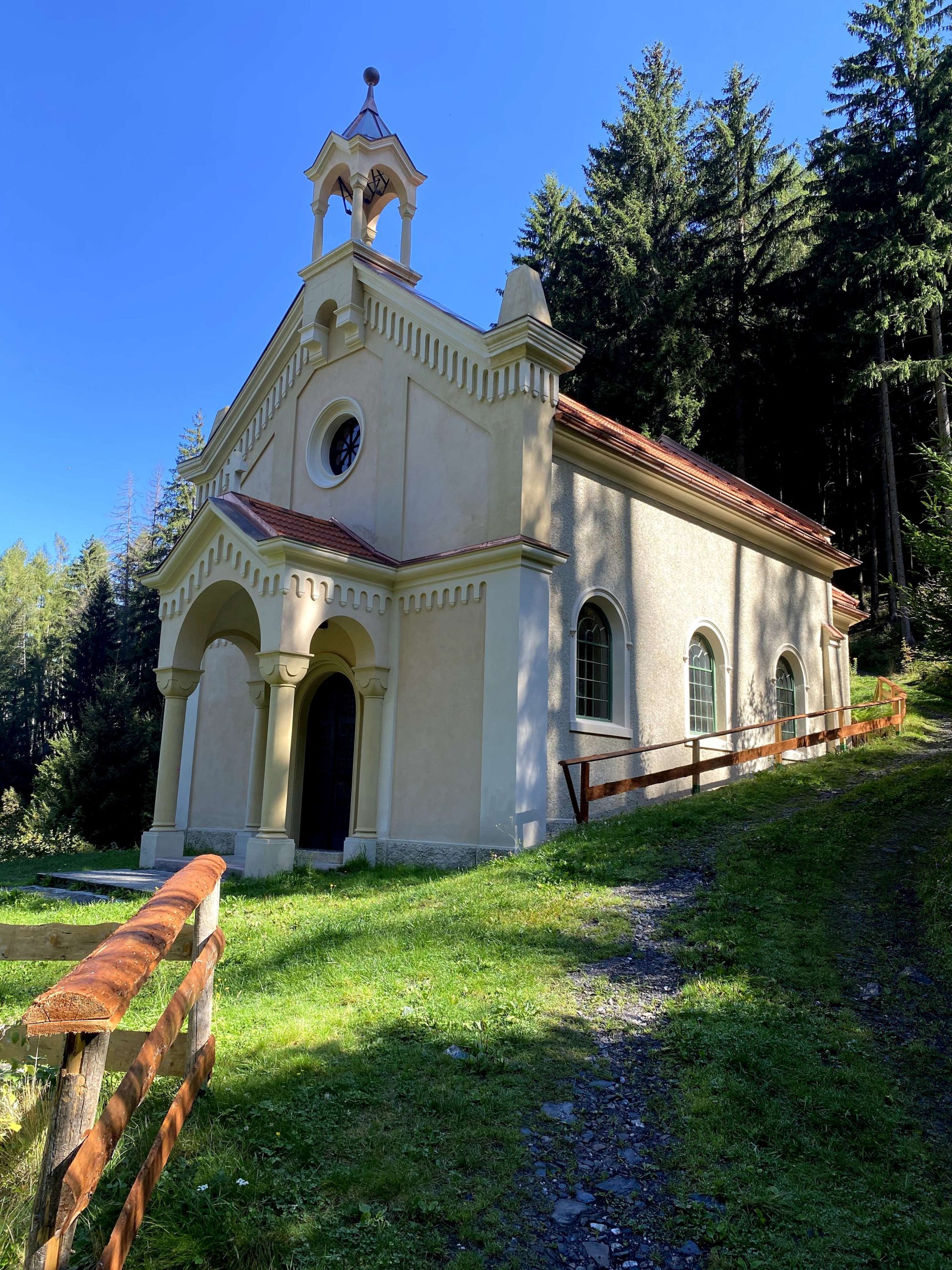 L’edificio, costruito nei primi anni del Novecento su una cappella lignea preesistente, era rimasto per anni inagibile a causa del degrado strutturale. Oggi, grazie alla Sovraintendenza ai Beni Culturali, alla Provincia di Bolzano e alla Compagnia di Gesù, nonché all’impegno di molti volontari, la chiesa è stata restaurata in maniera fedele e attenta. Anche gli arredi interni in legno, dalle panche agli altari, sono stati pazientemente recuperati, restituendo all’edificio il suo valore storico e spirituale.