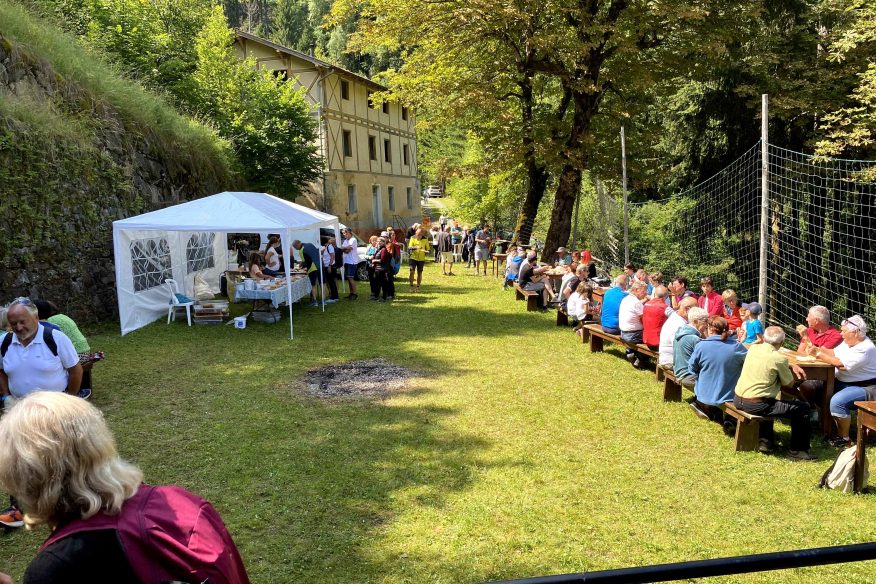 Per tutto il giorno si sono poi svolte visite guidate, organizzate in turni differenziati, sulla millenaria storia di Bagni Froy, con percorsi che conducevano fino alla chiesa restaurata. Le visite sono state curate in lingua tedesca dall’Associazione Beni Culturali di Chiusa, e in italiano dai volontari di Bagni Froy. Grazie anche alla presenza di una produttrice locale che ha messo a disposizione panini e dolci, i visitatori hanno potuto trascorrere una piacevole giornata di scoperta e convivialità.