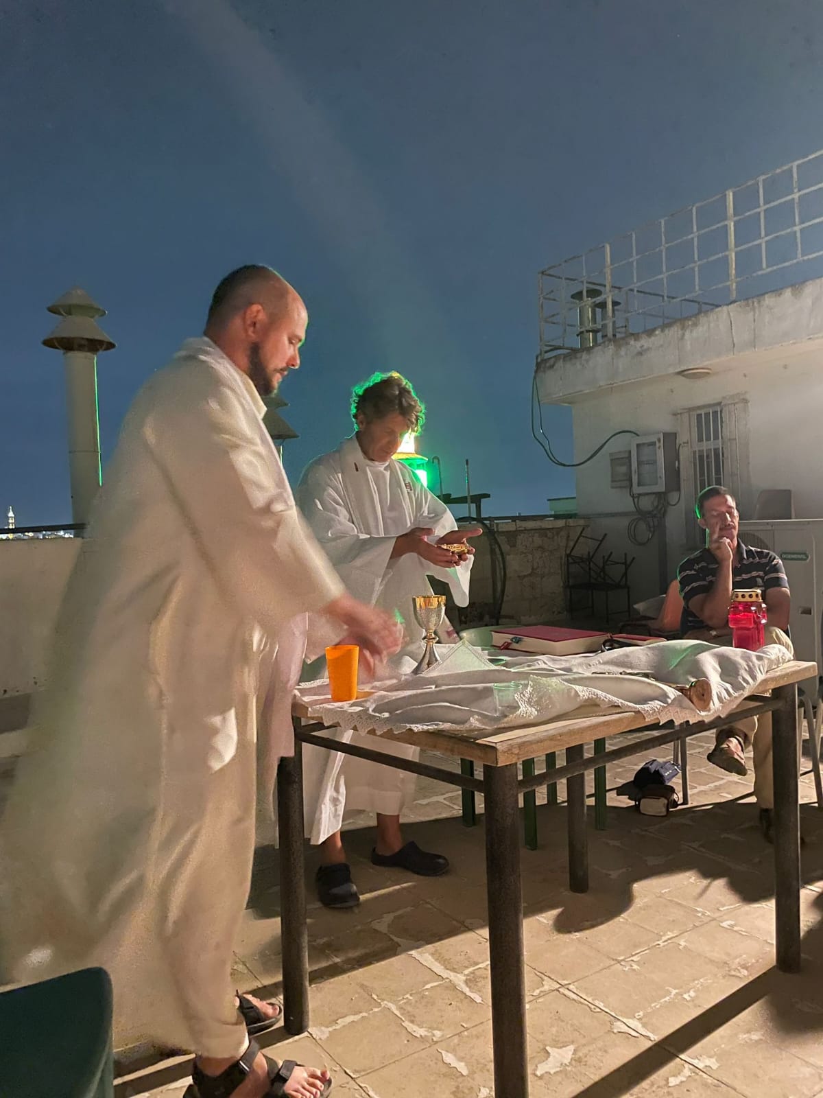 La celebrazione nella vigilia della festa di Maria Assunta in ciel, cifra del cammino di ogni uomo, ha dato lo spunto, lo stile, la chiave di lettura e il senso, del servizio che si svolgerà. Lo scenario evocativo ha arricchito la riflessione, sullo sfondo infatti si aveva il monte degli Ulivi, luogo dell’agonia e della scelta d’amore radicale di Gesù ed ancora la cupola che protegge il luogo della Resurrezione, testimonianza che una vita donata vince la morte.