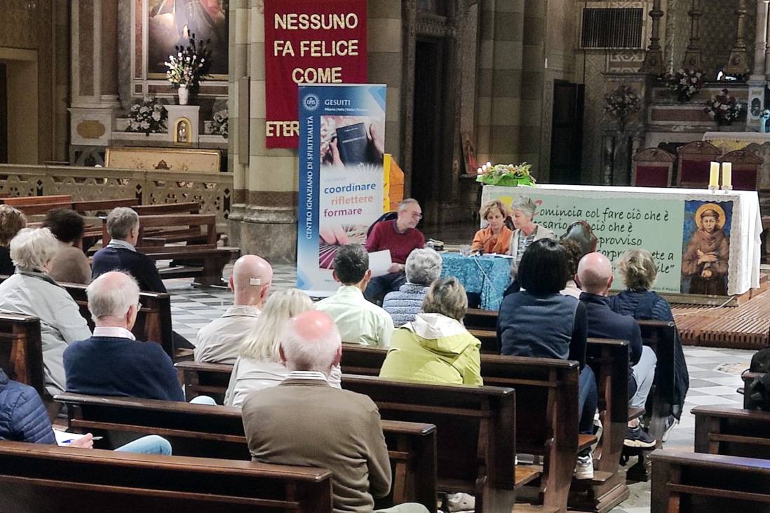 Anche al CIS (Centro Ignaziano di Spiritualità) è stata data l’opportunità di partecipare e offrire un assaggio della spiritualità ignaziana, declinata a più voci, femminili e maschili, laiche e consacrate. Sei incontri in tre giorni (uno al mattino e uno al pomeriggio) in diversi luoghi della città (Circolo dei lettori, Parrocchia di San Secondo, Centro Teologico), ci hanno permesso di entrare in contatto con molte persone (circa 250) e di percepire il loro desiderio di mettersi in gioco, con apertura e semplicità. Ed è stata per noi un’occasione preziosa per dialogare con la ricerca spirituale del mondo contemporaneo che sta interrogando e sta coinvolgendo tante guide di Esercizi e operatori ignaziani.
