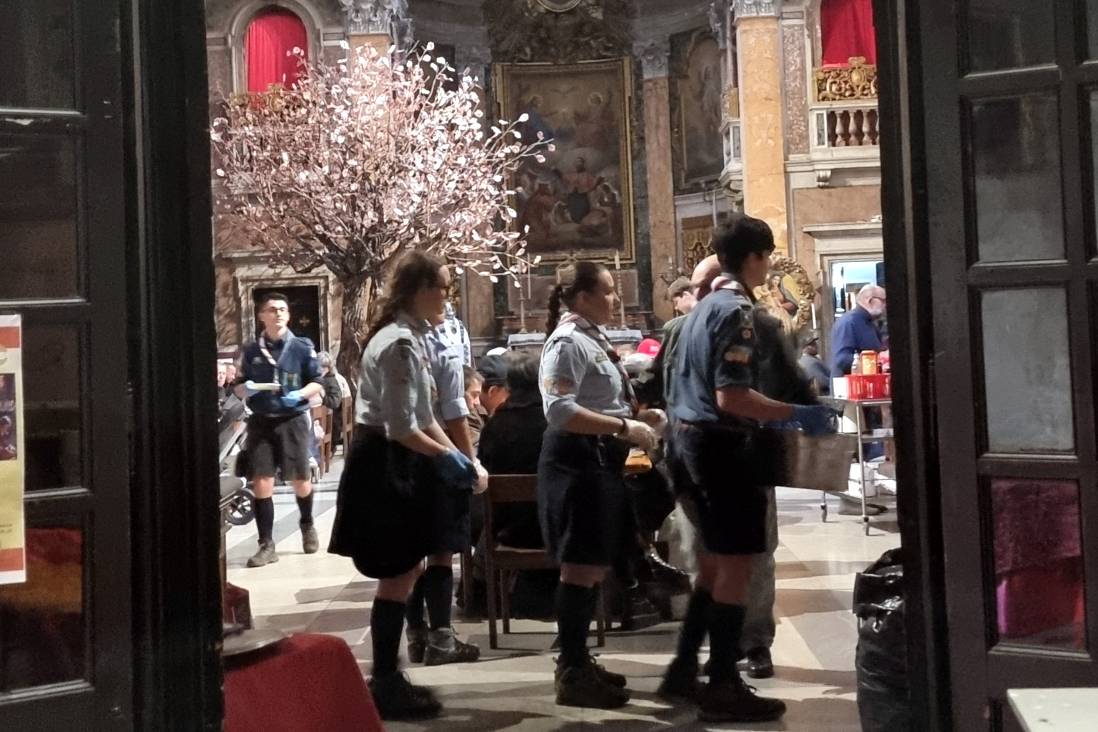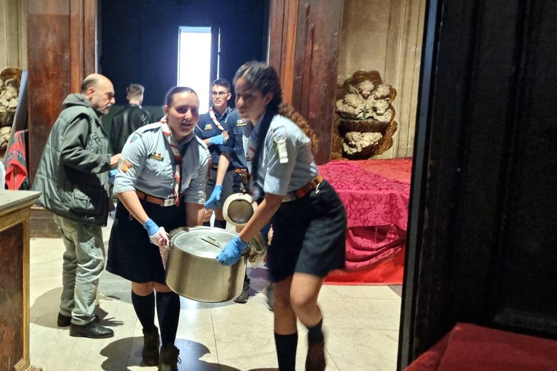 Si inizia con un catering: aderiscono studenti, ex studenti, docenti. Oggi i volontari che ruotano ogni giorno intorno alla mensa sono centinaia. Il pranzo viene servito in due turni a circa 150 persone al giorno. Il sabato la cucina è affidata ai volontari che si occupano della spesa, della preparazione del pasto, negli spazi dell’attigua comunità dei gesuiti, e del servizio. “Qui non si porta solo il cibo. ci si siede e mangia con loro, si ascolta, si parla, si generano relazioni” aggiunge p. Massimo. Lo confermano alcuni giovani scout d’Europa volontari, in preparazione al giubileo degli adolescenti: “Abbiamo iniziato preparando i tavoli e portando il cibo. Poi ci siamo seduti a mangiare e parlare con loro, come in famiglia” racconta Chiara, 15 anni. “Incontrare persone che hanno tante storie diverse e nella società non sono valorizzate è stato molto arricchente” aggiunge Giorgio, 16. “Guardare in modo diverso, senza pregiudizi, è già amare” sottolinea Gaia. “È un cammino che si fa insieme” conclude Oronzo Labarile, ex docente e volontario “ascoltando le diverse esigenze, dei volontari e degli ospiti”.