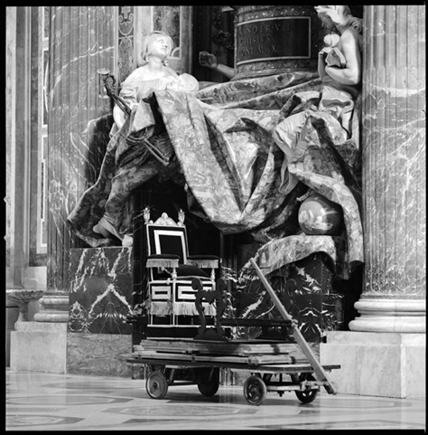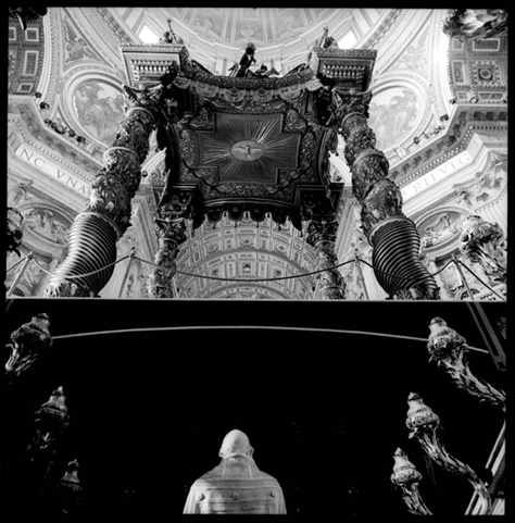 È la visione rivoluzionaria, femminile, di Antonia Mulas – fotografa, documentarista, artista – della Basilica di San Pietro a Roma. Da questi racconti in frammenti emerge come un senso di vuoto, una sorta di ambiguità soffusa. Una fragilità nervosa si impone al cuore della magniloquenza di gesti solenni e retorici. La gloria si fa inquieta.