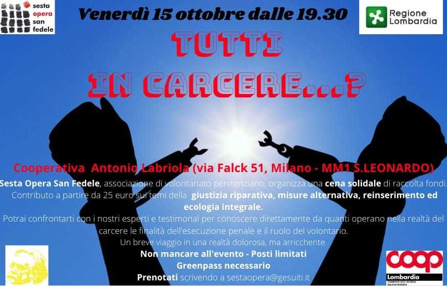 Con la cena di solidarietà Sesta Opera vuole, in questi inizi di autunno, riaprire, grazie anche alla collaborazione della Coop Bonola – una nuova stagione di incontri e di interventi per sostenere l’inclusione, la valorizzazione delle differenze e fornire a chi sconta la pena strumenti per affrontare l’attuale società: valori che accomunano l’Associazione, Coop e la Cooperativa Antonio Labriola Scarl.