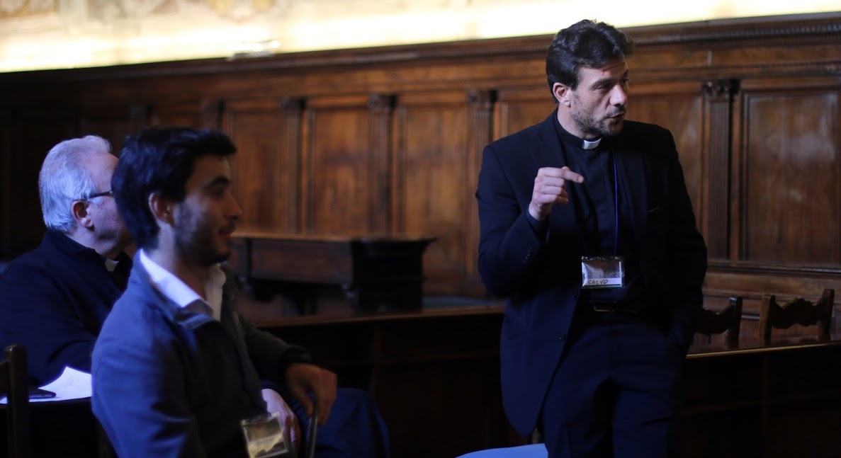 È il 30 aprile, vigilia della festa di san Giuseppe lavoratore, e la Provincia d’Italia si attiva per riflettere, pregare, celebrare la paternità e il lavoro con il santo sposo di Maria. Sono tanti i compagni gesuiti coinvolti a vario titolo. Diversi sono presenti “in video” nelle interviste proiettate in continuo nella sala ipogea (p. Giovanni Cucci sj, p. Emanuele Iula sj, p. Federico Lombardi sj, p. Vincent Magri sj, p. Gaetano Piccolo sj, p. Antonio Spadaro sj, p. Giuseppe Trotta sj, ma anche Leonardo Becchetti, Stella Morra, Eva Osterman e il vescovo di Bologna, Matteo Zuppi). P. Pino Piva jr sj anima tre momenti di preghiera nella cappella dell’Assunta (con Fabrizio Natali sj, Daniele Ferron sj e Andrea Bonavita sj alla musica). P. Vincenzo Anselmo sj e Andrea Monda riflettono sulla paternità “tra Abramo e il cinema” nell’antica sacrestia. In contemporanea nella sala Assunta si parla di migrazioni e rifugiati con p. Alessandro Manaresi sj, Luigi Territo sj e un rifugiato del Centro Astalli. P. Beppe Bertagna sj è pronto a dirigere una dinamica attiva tra figli, genitori e nonni. Nelle pause tra le diverse attività il maestro Daniele Proni offre un concerto d’organo con musiche di Frescobaldi, Zipoli e Händel.