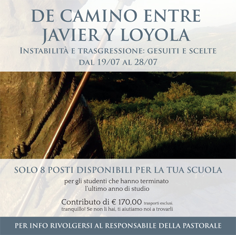 Nella dinamica ignaziana “esterno-interno-esterno” si proverà a comporre uno “zoccolo duro” delle proposte della Pastorale: il sentiero che porta a Santiago si presta bene a farsi metafora del “cammino della vita” nelle dimensioni spirituali che la innervano. Preparerà, così, al Kairos come ad un “viaggio verso l’interno” della storia personale, spirituale e affettiva dei nostri studenti. Il cammino tra Javier e Loyola, ci proietterà, infine, in avanti, verso le nuove sfide, universitarie e di vita, con l’aiuto delle biografie dei nostri Padri, Ignazio e Francesco, maestri “pellegrini” tra equilibrio e instabilità, ordine e trasgressione, intraprendenza e prudenza.