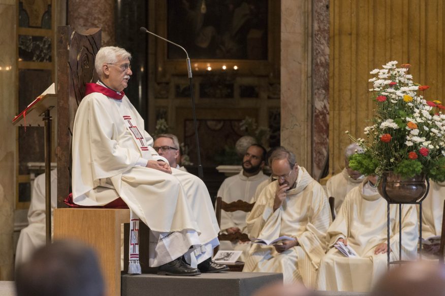 “Come ogni nascita anche quella della neonata Provincia Euro-Mediterranea porta con sé gioia e incertezza”: il padre generale Arturo Sosa celebra nella chiesa del Gesù davanti ai rappresentanti dei 520 gesuiti della nuova entità territoriale nata ufficialmente il primo luglio 2017. Alla presenza di collaboratori laici e amici della Compagnia, la lettura dei decreti con cui viene costituita la nuova Provincia e ne viene nominato provinciale padre Gianfranco Matarazzo, apre una celebrazione che rende bene il senso della ricchezza e della complessità del cammino che va a iniziare. Preghiera liturgica in italiano, prima lettura in maltese, seconda in albanese, Vangelo in inglese, preghiere dei fedeli nelle quattro lingue e così via…senza dimenticare Padre nostro e qualche altro canto in latino. “O Dio onnipotente… concedici di operare sempre in comunione con il tuo Figlio perché, infiammati di carità e unificati dallo spirito di obbedienza, custodiamo nel cuore quell’unione degli animi che è opera della tua grazia”: la colletta della celebrazione speciale per “l’Unione degli animi” rende bene il senso di un momento storico per la Compagnia. “Albania, Malta e Italia hanno situazioni sociali complesse e in cambiamento, che sono una sfida alla nostra capacità di capire e discernere”, dice nell’omelia padre Sosa. “L’incertezza davanti a un futuro che non riusciamo ad anticipare è anche spinta a mettere fiducia nel Dio che ha chiesto ad Abramo, a 75 anni, di lasciare la sua terra”.