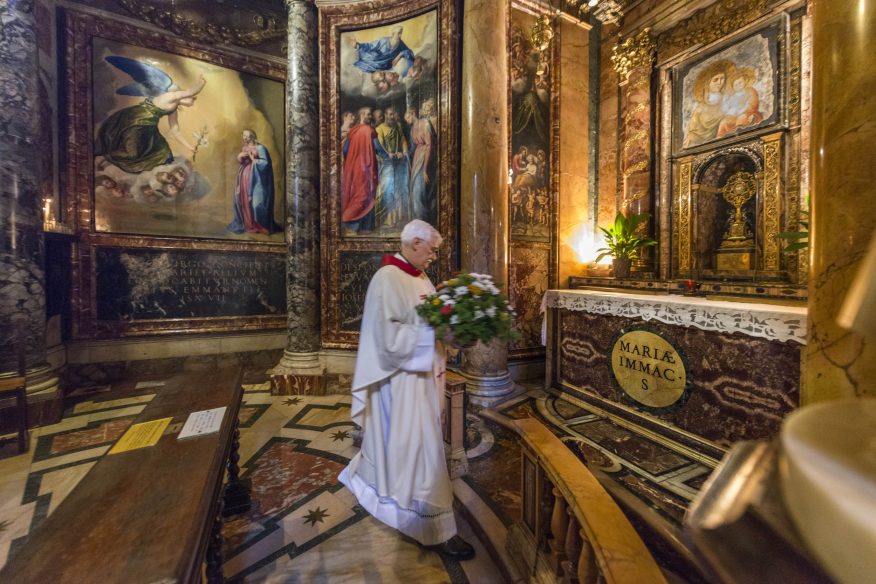 Alla fine della Messa, il padre Generale con i concelebranti si reca in processione all’altare di sant’Ignazio per venerare le reliquie e innalzare la preghiera per la Provincia Euro-Mediterranea. Quindi depone dei fiori nella Cappella della Madonna della Strada, che è patrona della nuova realtà, insieme ai martiri albanesi. Dopo la celebrazione c’è un momento di festa nel cortile del Gesù.